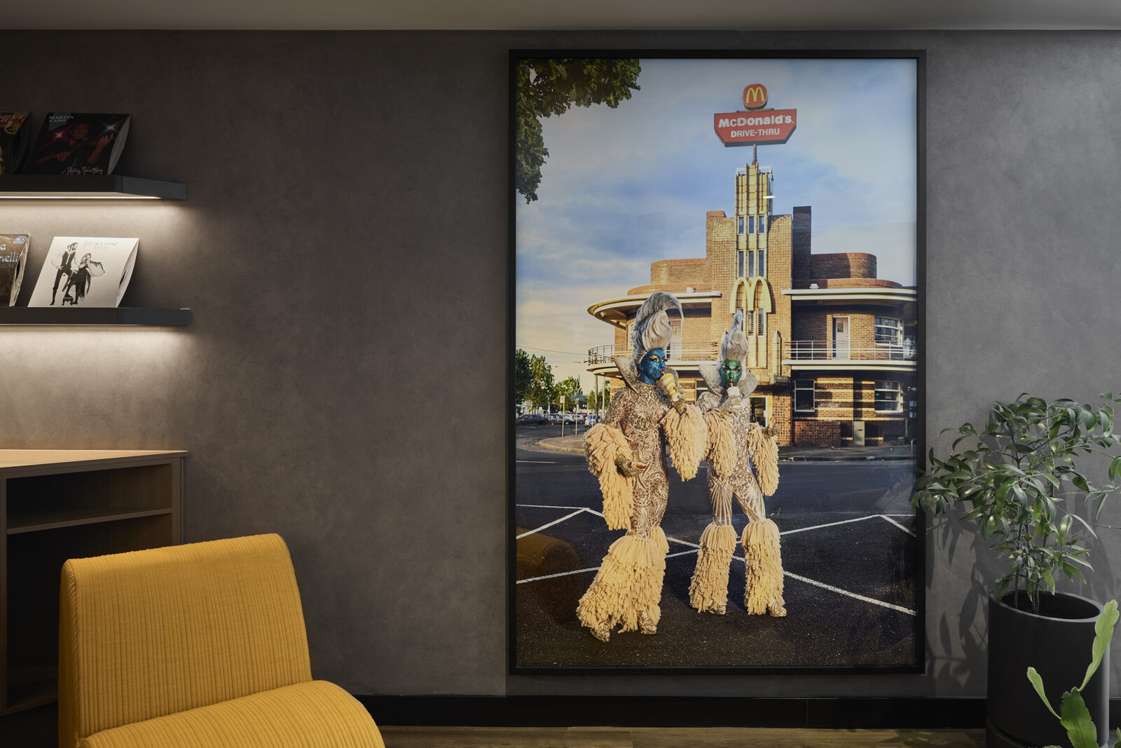 The Huxleys photographs are included in the permanent collections of the National Portrait Gallery, Canberra; HOTA, Gold Coast; Pictures Collection at the State Library of Victoria; Geelong Gallery, Geelong; Curtain University Gallery, Perth. The Huxleys consist of Will and Garrett Huxley. To show solidarity with the flight for gay marriage Garrett took on Will’s surname. This was also to commemorate their ongoing love and connection as partners of over 15 years. In the early days of working together when Will and Garrett would show up in costume, performers and audiences would say “look the Huxleys are here!” and this kept happening so they decided to adopt the joining of their names as a message of love and unity through their relationship and work and have continued working with this artistic moniker, gifted to them by the artistic community of Melbourne which they love and adore.